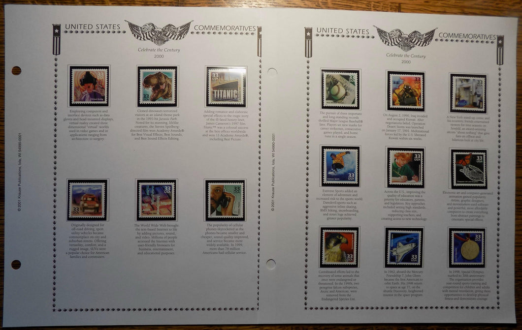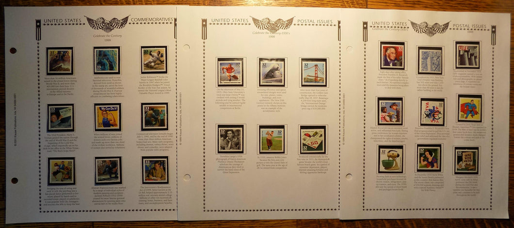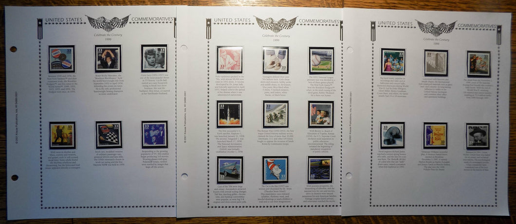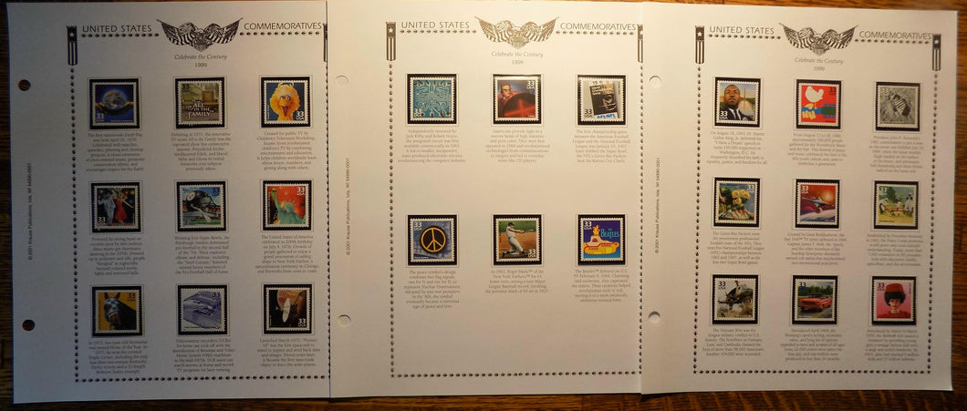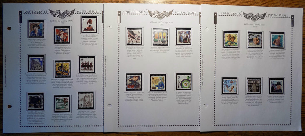 # 3182-91 (1998-2000) Celebrate the Century, 1900's through 1990's - Sgls on pg, in mounts