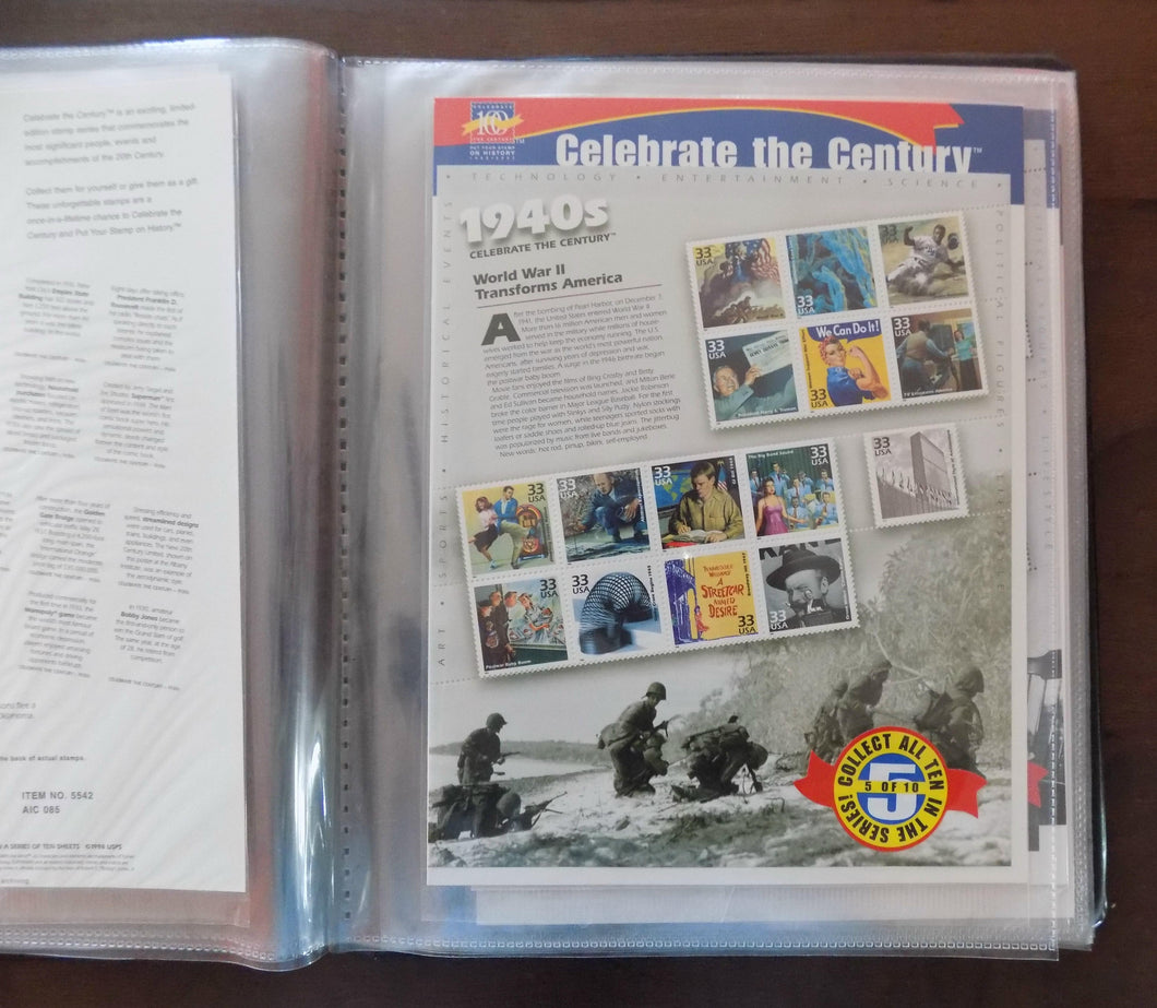 # 3182-91 Celebrate the Century Stamp Mini Sheets Issue with Padded Binder