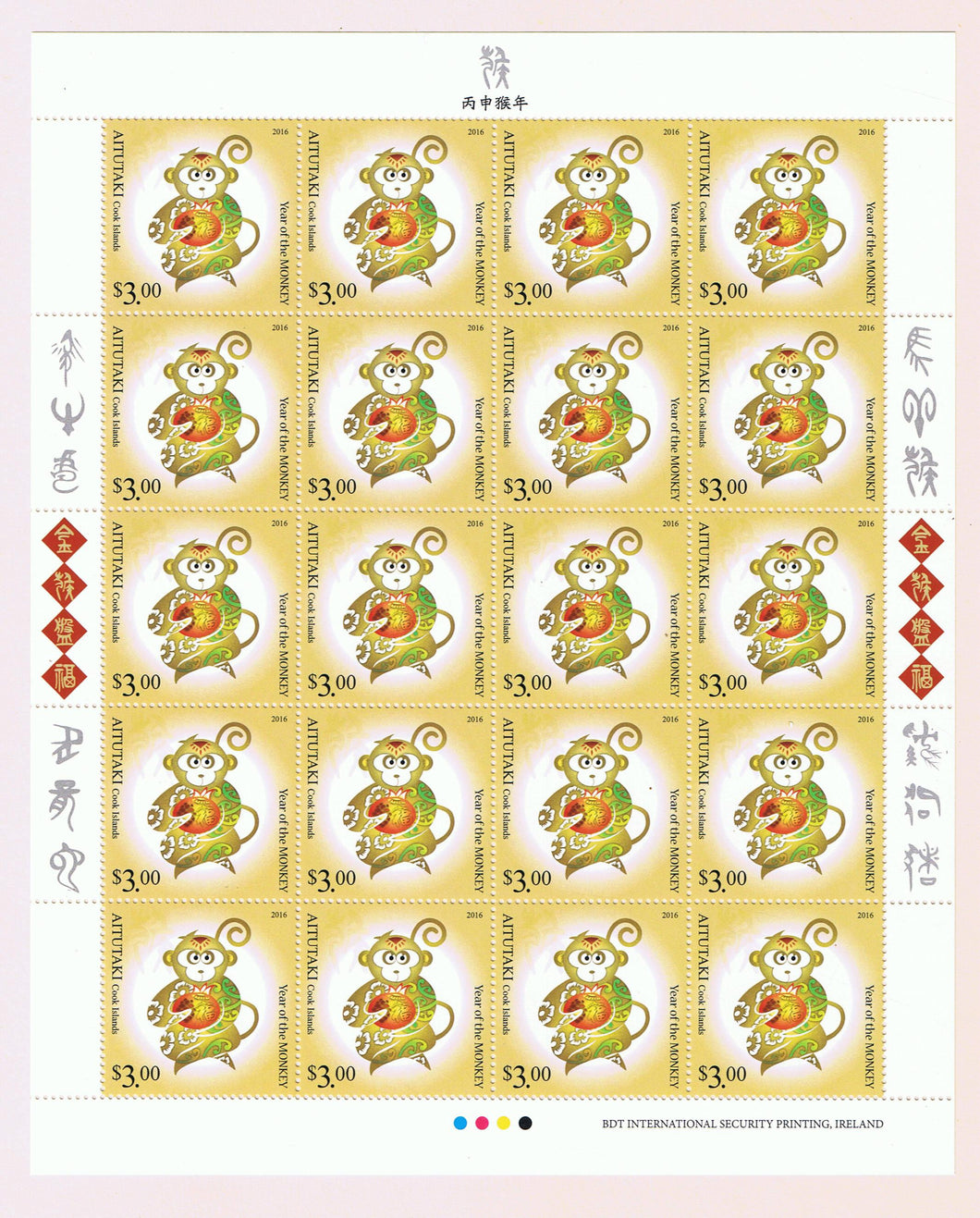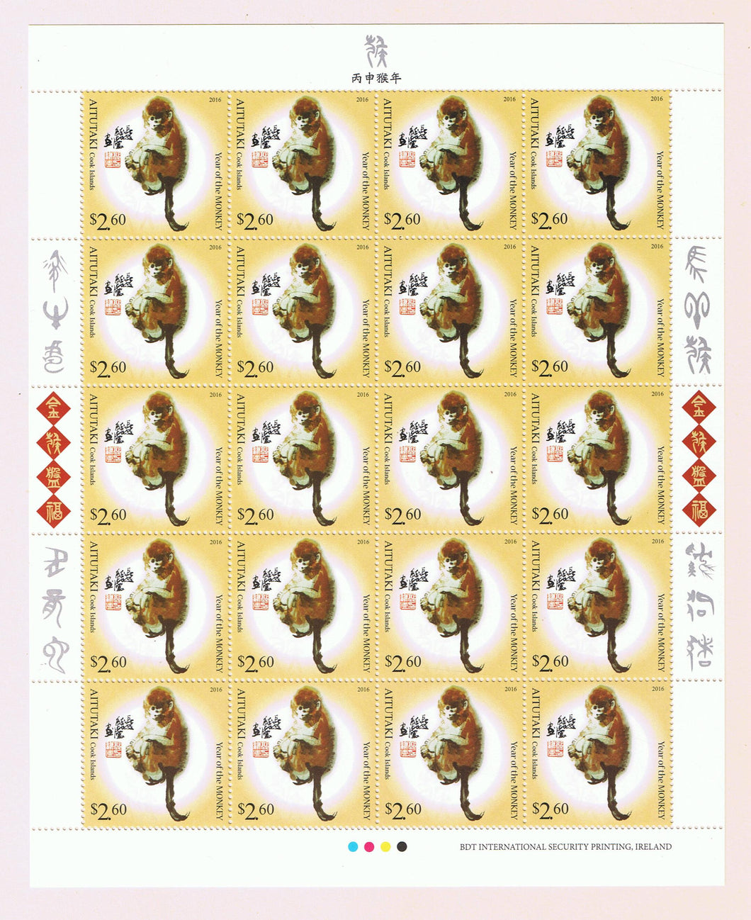 Aitutaki # 631-32, 2016 Year of the Monkey