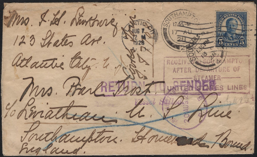 Return to Sender - Vessel Sailed 20 Aug 1928.